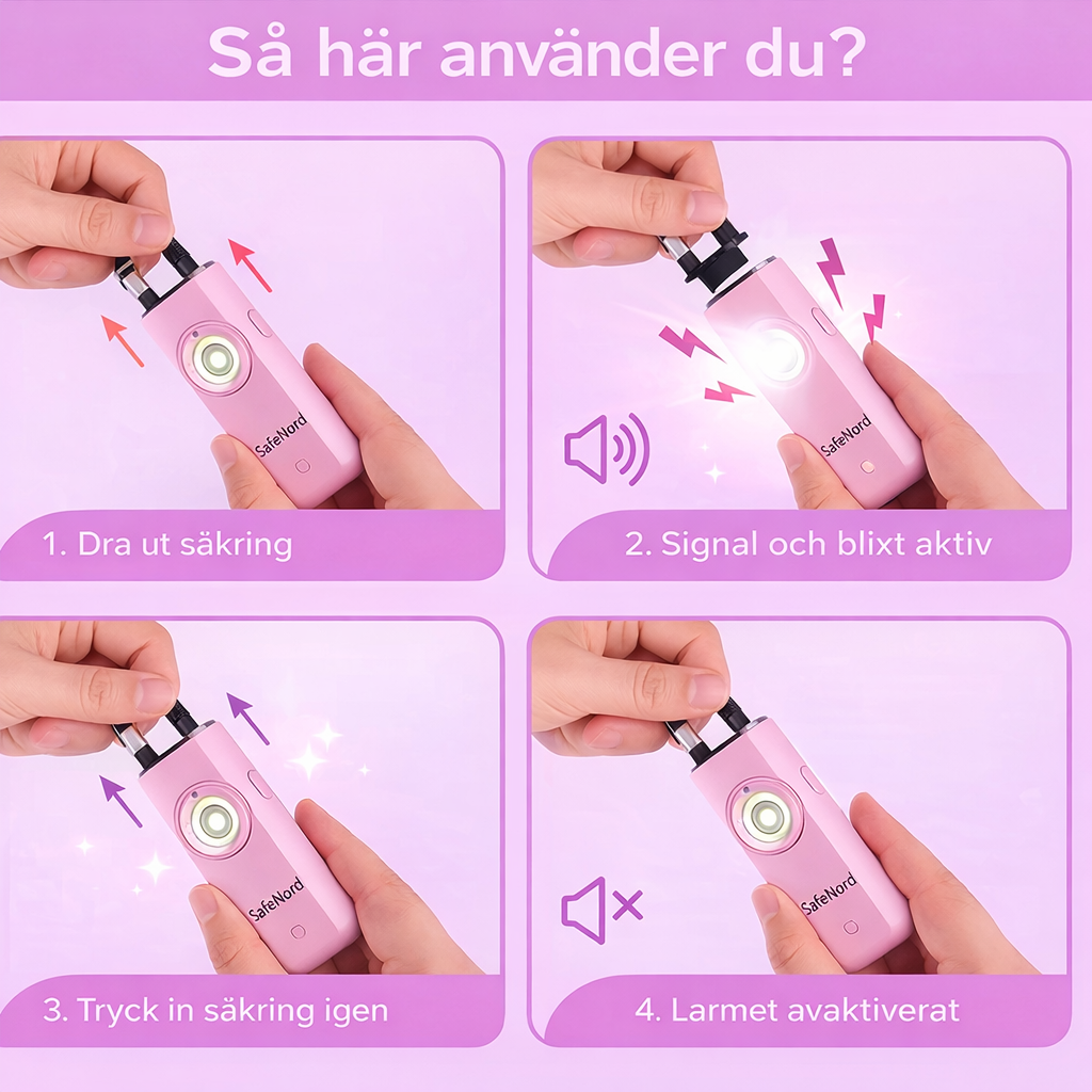 Till skillnad från traditionella självförsvarsprylar är SafeNord framtagen för att ge trygghet utan våld. Den är diskret, resevänlig och enkel att bära med varje dag – oavsett om du är på väg hem, reser eller går själv på kvällen.